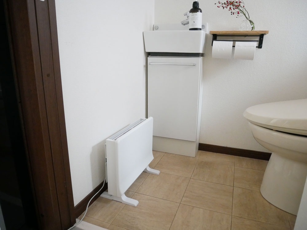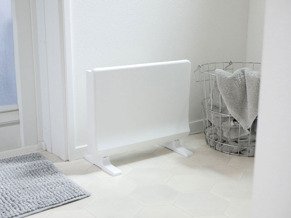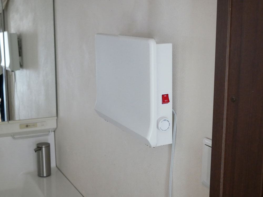 狭い脱衣所を邪魔せず、暖めるヒーター。