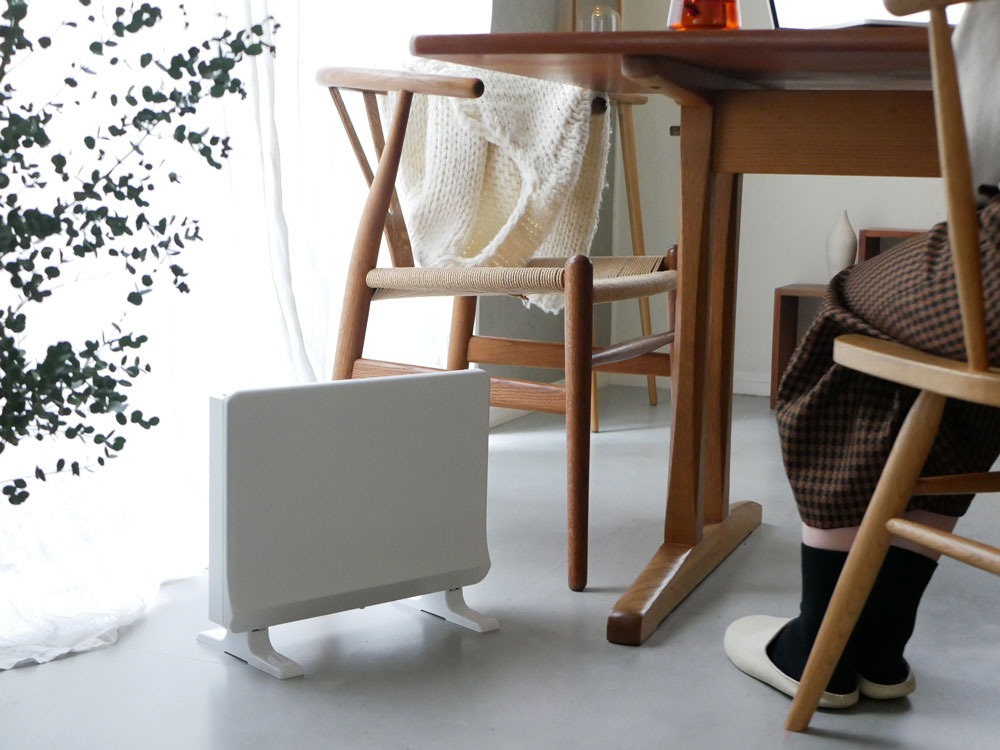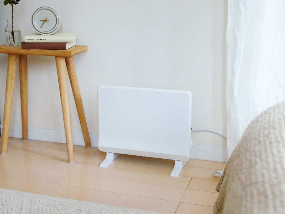 ブオーッと送風の音もせずじんわりと空間を暖めるので、寝室での使用もOK。風を送らないので乾燥もしづらく、ホコリも舞いません。