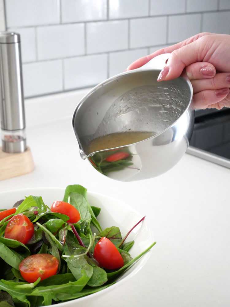 目盛り付きなので、ドレッシングや合わせダレなどの時に便利。