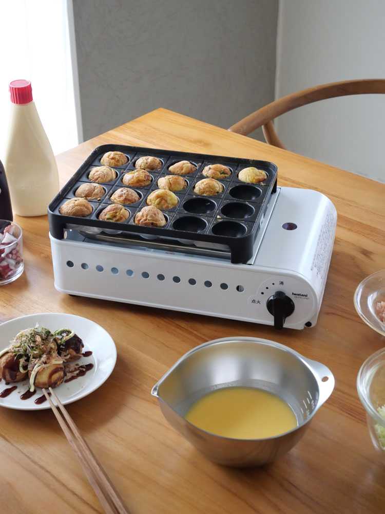 失敗が少なくじっくり焼ける電気式のたこ焼き器もいいけれど、外はカリッと中はトロ~とした本格的な焼き上がりを求めるなら、やっぱりカセットコンロ式がおすすめ。