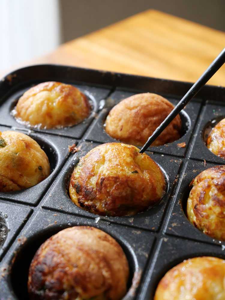 そうすることで全てのたこ焼きにムラなく火が通り、短時間でおいしく焼き上がるんです。